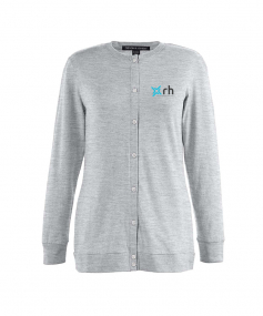 5 oz., 58% cotton, 39% modal, 3% spandex jersey; Soft modal blend drapes without clinging; Dyed-to-match grosgrain ribbon accents placket; Dura-Pearl buttons ideally spaced to avoid unflattering gaps; Banded rib knit cuffs and bottom hem; Longer 27" length (size medium) is ideal for wearing open or closed