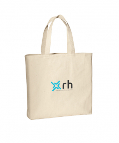 10 Oz., 100% cotton twill with cotton web handles. Approx. 588 cubic inches. Complies with Prop 65. 14" W x 14" H x 3" D